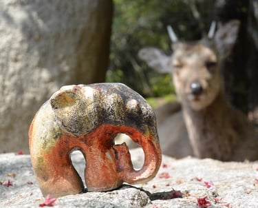 Elephant Park sculptures are handcrafted in Latvia, shaped from clay and brought to life through traditional firing techniques. Each piece is carefully fired in Raku and Noborigama kilns, giving every elephant its own unique surface, character, and story.